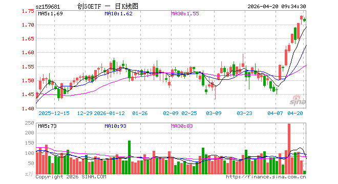 4月20日,创业板50ETF鹏华(159681)开盘跌0.58%,报1.719元。创业板50ETF鹏华(159681)重仓股方面,宁德期间开盘跌2.52%,中际旭创跌0.24%,新易盛涨0.00%,东方钞票涨0.05%,阳光电源跌0.02%,胜宏科技涨0.79%,开云汇川期间涨0.52%,迈瑞医疗跌0.16%,天孚通讯跌0.82%,亿纬锂能跌0.06%。
