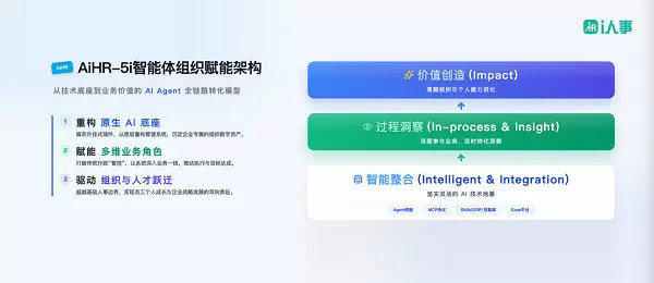 魏大伟将5i架构(Intelligent智能、Integration整合、In-process经由、Insight细察、Impact价值)界说为把AI转换为企业来往力的施工蓝图,共分三层。