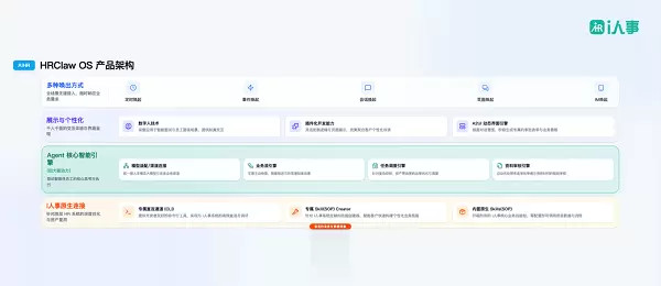 HRClaw的底气来自四层中枢架构:原生继续层自带手段包,扎根中枢东谈主事系统;中枢引擎层包含业务流、任务养息、资料审核引擎;展示与个性化层通过数字东谈主和A2UI期间终了千企千面;多种唤出形势支握企微、钉钉、飞书。
