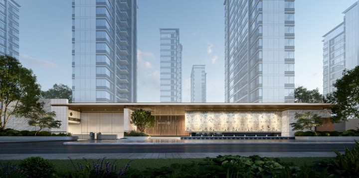 成都的D23风华,就以新加坡Leedon Residence为联想正本。通过高窗地比(约0.33-0.44)、全面屏玻璃幕墙、竖向线条铝板等联想,打造通透、前锋、轻微的都市建筑形象,